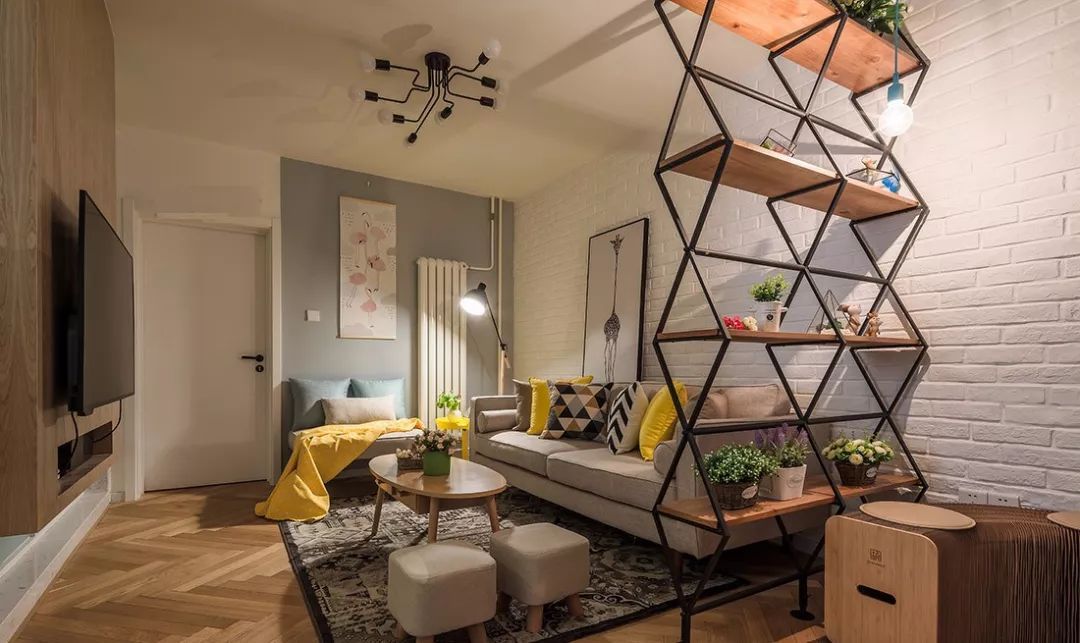 除了單純的裝飾,沙發(fā)背景墻還能做收納設(shè)計,尤其適合空間小的客廳,可以做擱板、置物架和收納柜。各種造型的擱板和儲物格子,既能儲物,又有裝飾作用。