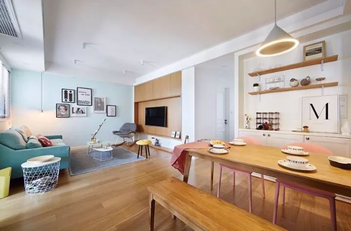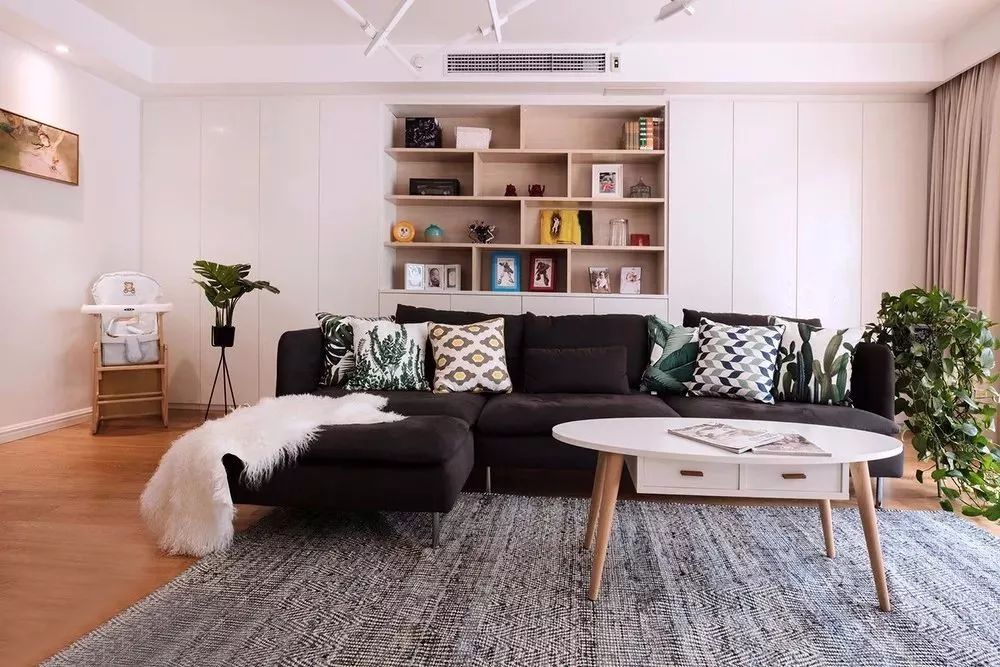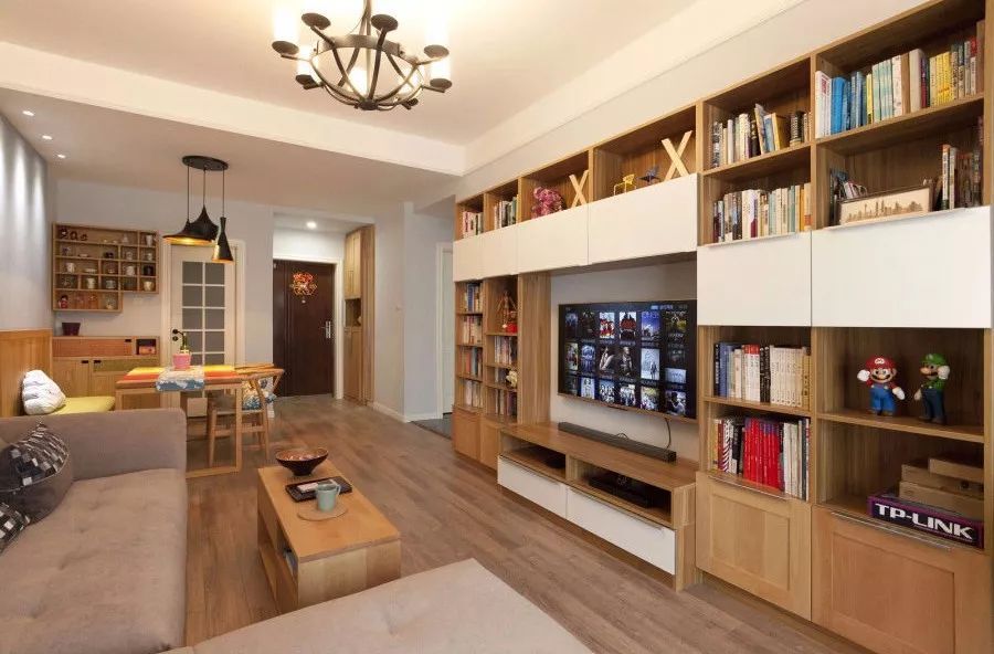 另外如果想利用電視墻做收納,那么可以根據(jù)家里的收納量來定制電視墻的收納形式,比如一整面頂天立地的柜子、矮柜、多個小柜組合、擱板等都可以成為收納的利器。