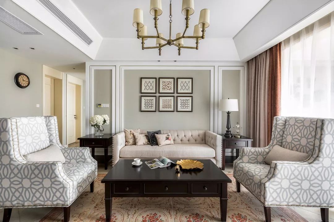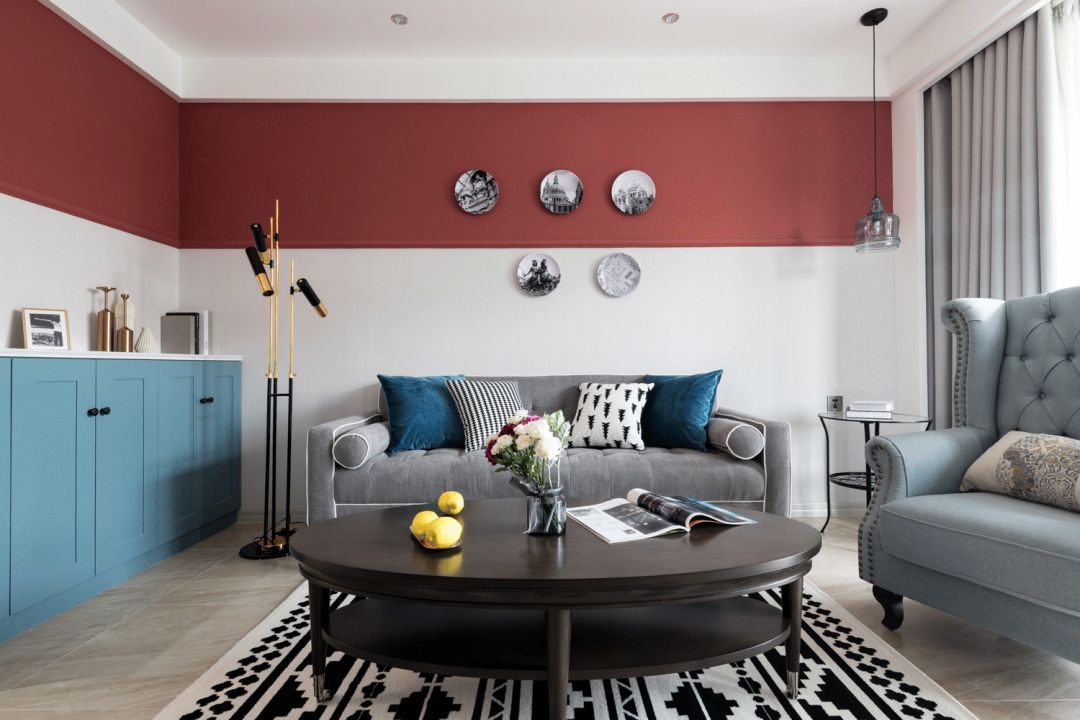 此外,沙發(fā)背景墻也可以用一點裝飾品進(jìn)行點綴。裝飾畫和照片墻最常見,也可以用掛盤及各種工藝品裝飾。