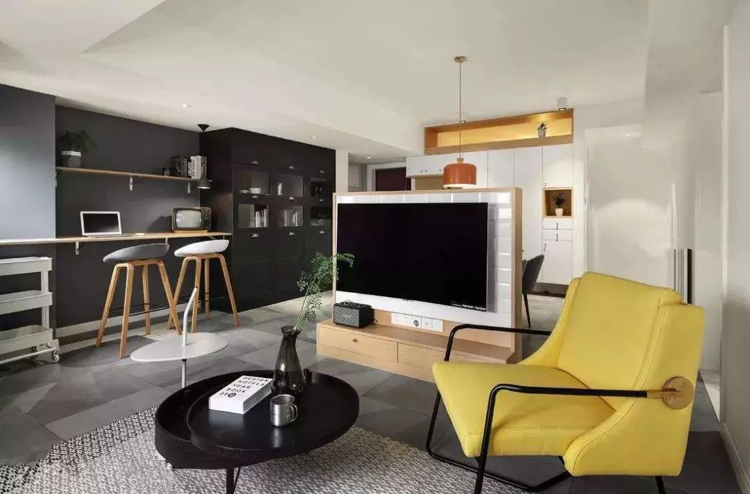 ▲隔斷式電視墻,不管戶型大小,都可以這樣設(shè)計(jì),占地不大,最主要的其實(shí),還是充當(dāng)隔斷墻,及劃分區(qū)域。拿這款來說,室內(nèi)整個開放式的,客廳、餐廳與吧臺等,連在一起,要是不設(shè)隔斷電視墻,電視機(jī)還真沒地方掛放呢。