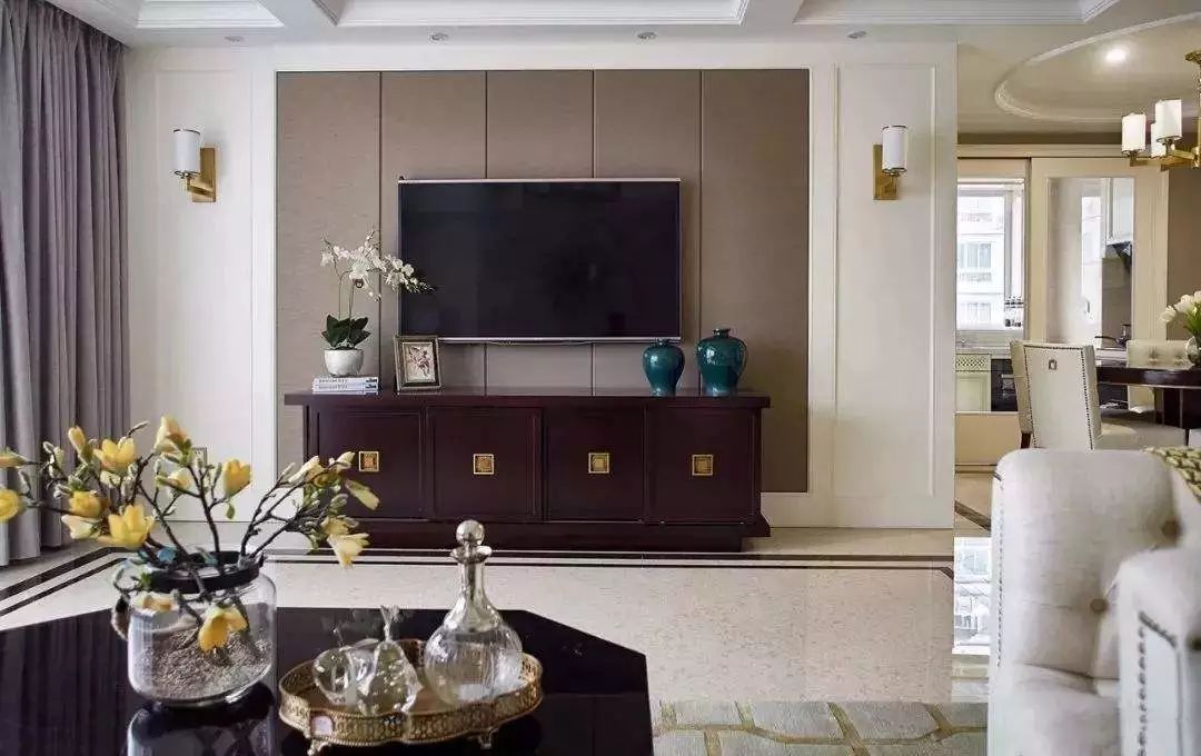 ▲硬包電視墻的設(shè)計(jì),在一些美式風(fēng)格中,比較常見,它耐磨、實(shí)用,防水效果好,整體造型簡單,價(jià)格經(jīng)濟(jì)實(shí)惠,其實(shí)還挺受歡迎的。這款效果美觀性還不錯,選擇好顏色,能起到不錯的裝飾作用。客廳想要顏值高,不單是要電視墻出彩,還要注意整體搭配。