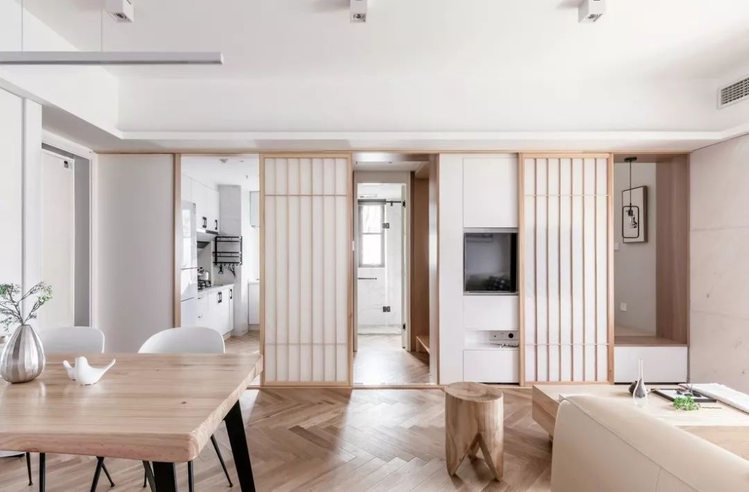 ▲這是一款隔斷式電視墻,顧名思義,既充當(dāng)隔斷,劃分了區(qū)域,還滿足了電視墻的功能,懸掛電視方便日常使用,再者就是多以半截的方式出現(xiàn),這樣還不影響,室內(nèi)的通透性,在居室當(dāng)中,還算是不錯的設(shè)計(jì)呢。這款原木色隔斷式電視墻,迎合室內(nèi)裝修,溫潤美觀。