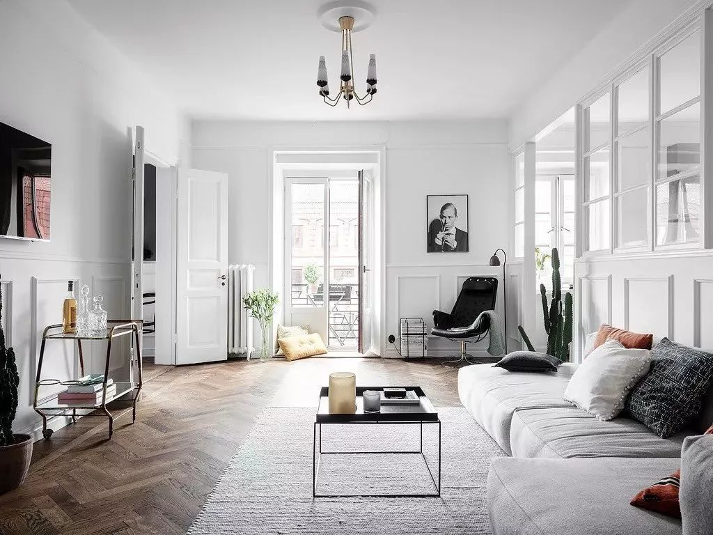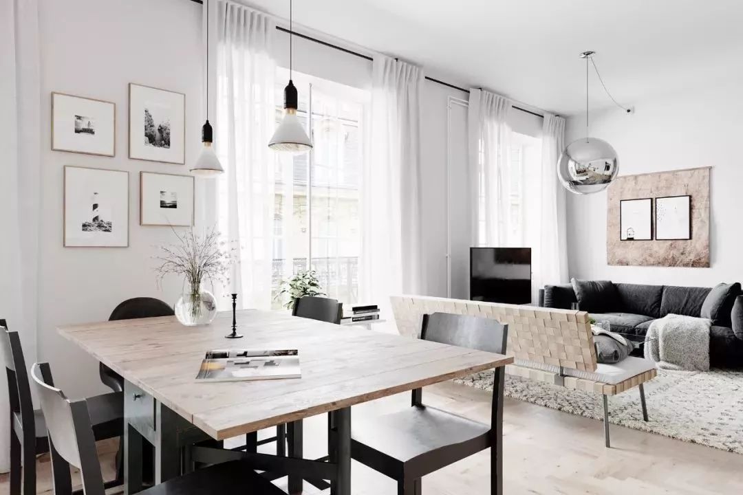 它常以白色為主調(diào),局部采用鮮艷的純色軟飾、綠植加以點(diǎn)綴;或以黑白為主調(diào),不加其他顏色,而是用保留原始質(zhì)感的木質(zhì)家具,力求表現(xiàn)自然舒適的生活意趣。