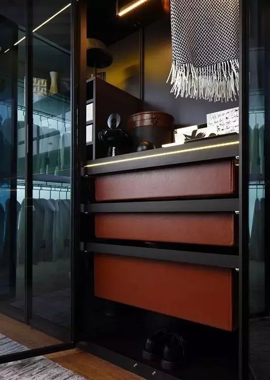 襯板:將衣物或配飾放在帶滑軌的推拉襯板中,搭配、取用一目了然。