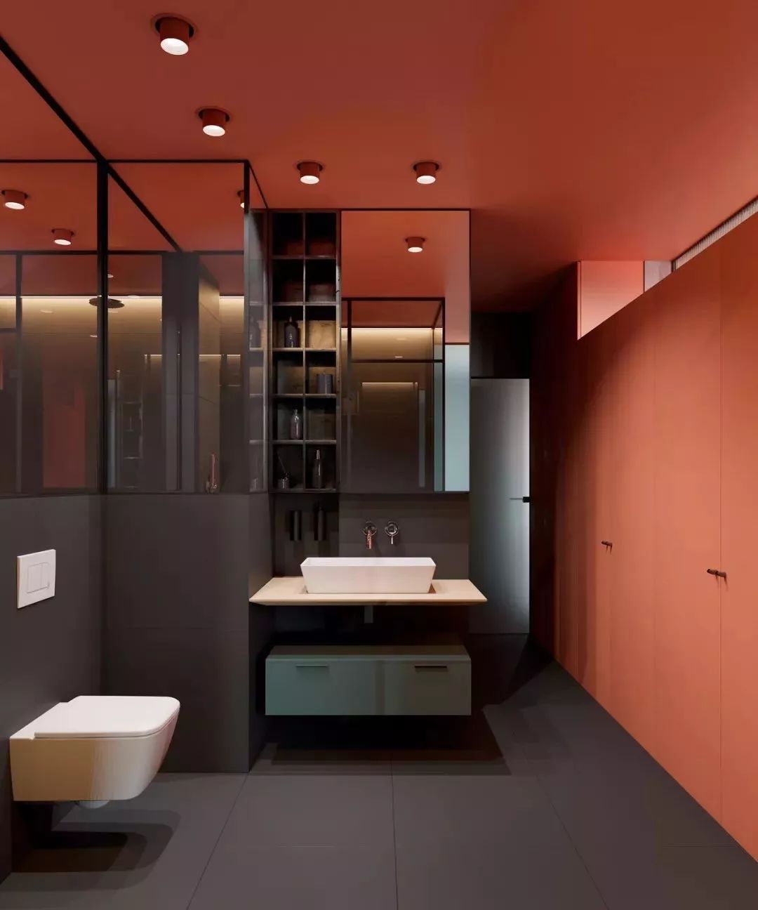 將風(fēng)情萬種的紅色注入衛(wèi)生間中,能夠打造出不一樣的女王氣場。它兼具時髦與復(fù)古兩種格調(diào),無論搭配白色或黑色,都能彰顯一定的高貴氣質(zhì),讓空間看起來更有層次感,好看不俗,霸氣十足。