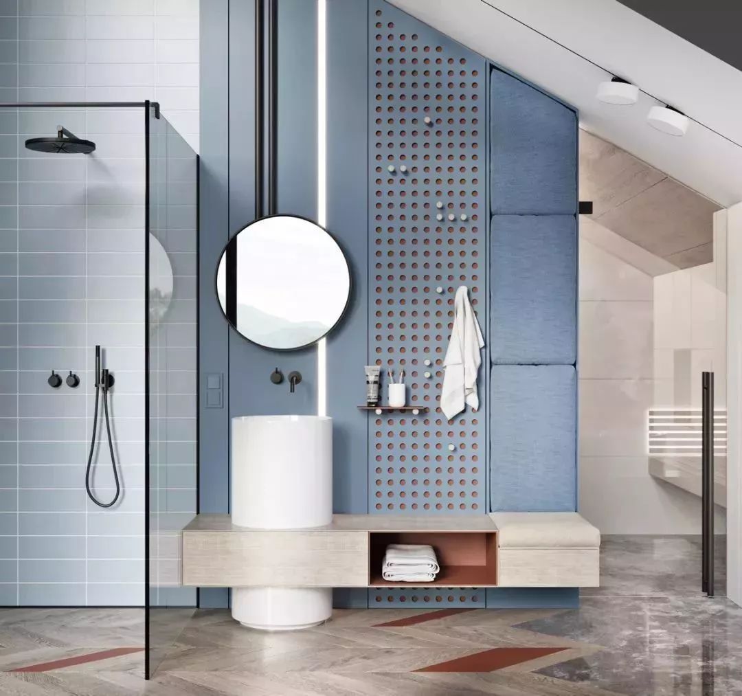 關(guān)于衛(wèi)生間的色彩搭配,我們最常見的莫過于極簡白、高級灰或是白與黑的簡約組合了。因為衛(wèi)生間是一個用來洗漱、衛(wèi)浴的地方,選擇單色調(diào)的墻面最能凸顯空間的潔凈之感。