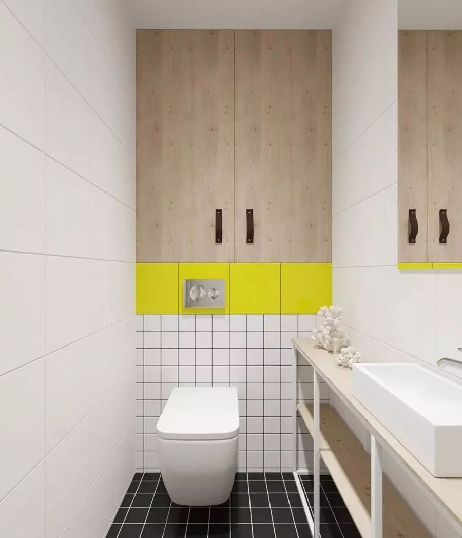 衛(wèi)生間雖是一個家的私密之地,但也最容易體現(xiàn)我們的生活品質(zhì)。如果你也覺得白色太過單調(diào)乏味了,那就用亮色將它裝扮起來吧!