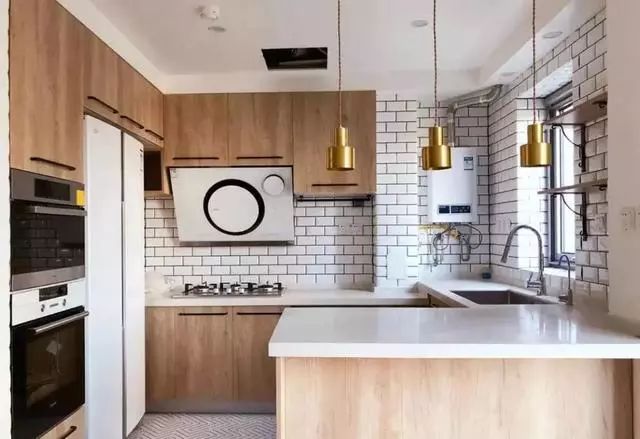 原木風(fēng)的櫥柜比較常見(jiàn)于北歐風(fēng)的設(shè)計(jì)當(dāng)中,溫馨的木色柜體和白色的臺(tái)面、小白磚結(jié)合起來(lái),讓人感覺(jué)廚房明亮而又舒適。