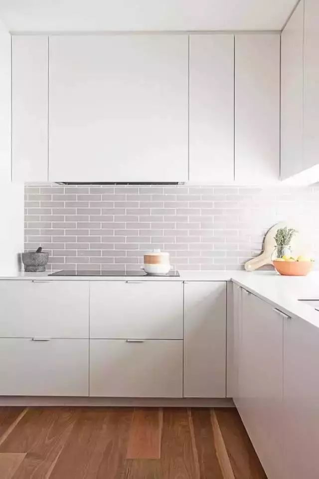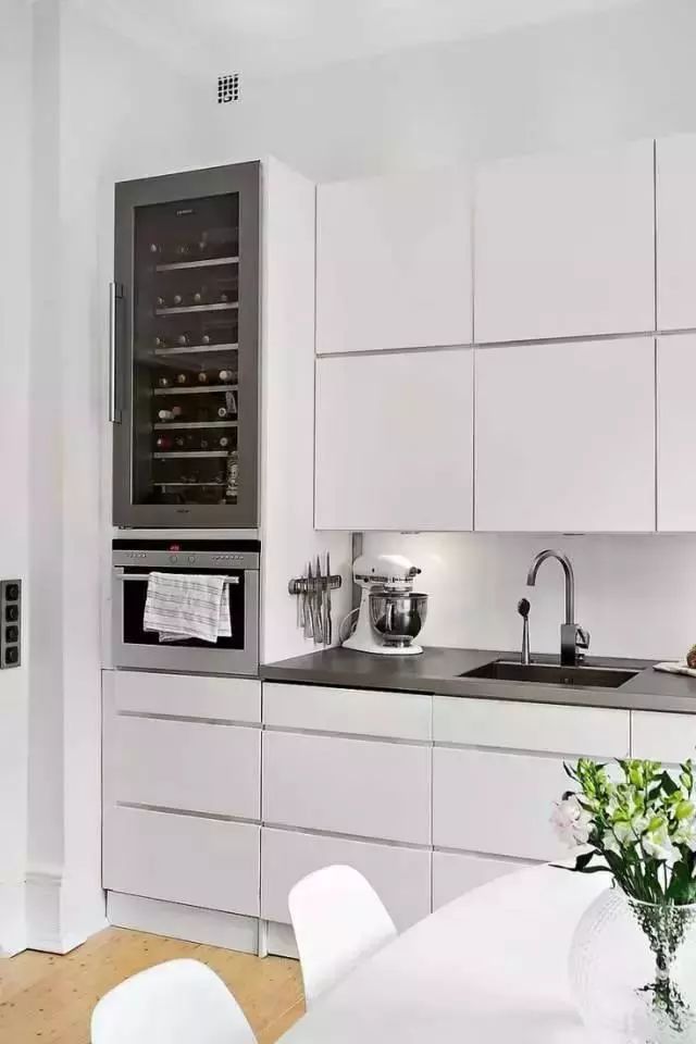 禁欲系的白讓人沉醉,帶來(lái)一股清涼而又純凈的氣息,既凸顯了廚房的潔凈,又彰顯出現(xiàn)代簡(jiǎn)約之美。