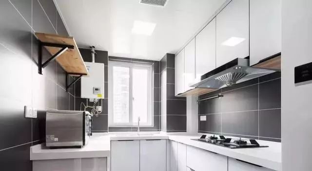 通過(guò)木色來(lái)提升廚房的溫馨感,白色帶來(lái)明亮感,灰色讓廚房變得更有格調(diào)感。