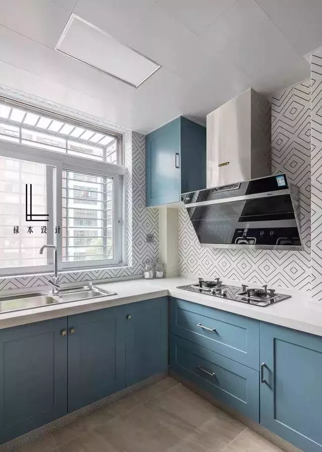 淺藍(lán)搭配白一點(diǎn)的色調(diào)更適宜,打造廚房的高級(jí)質(zhì)感。
