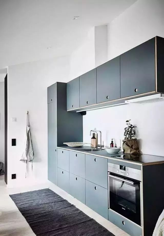 藍(lán)色櫥柜也很常見(jiàn),但絕不是辣眼睛的熒光藍(lán),而是深藍(lán)、蒂芙尼藍(lán),淺藍(lán),不同的藍(lán),演繹精彩斑斕的高顏值廚房。