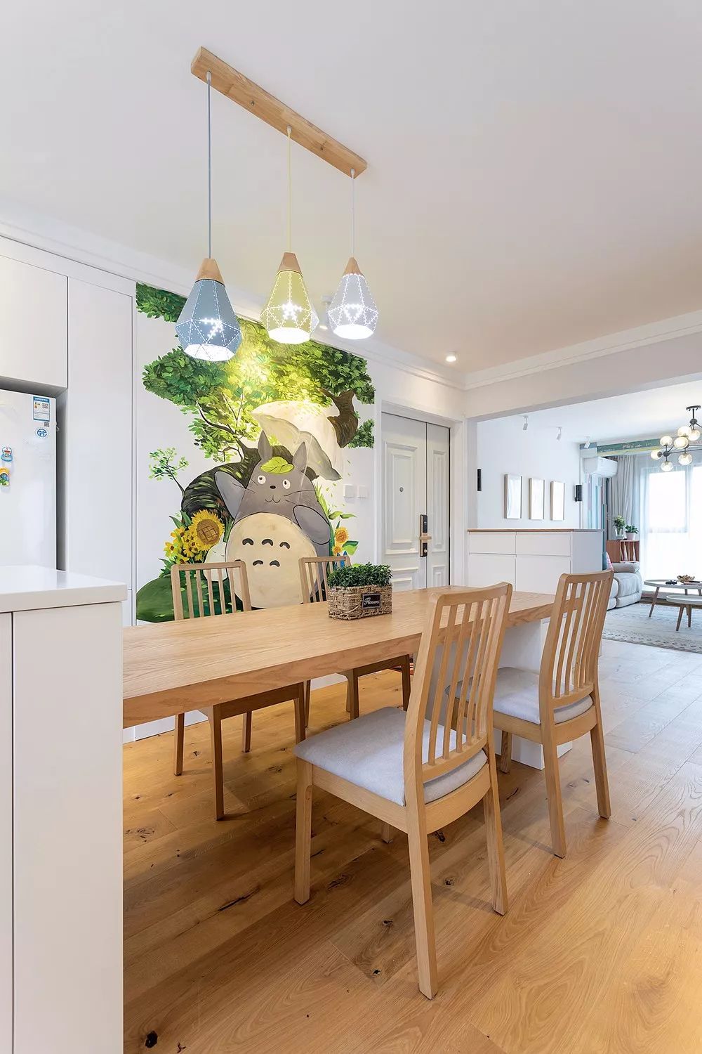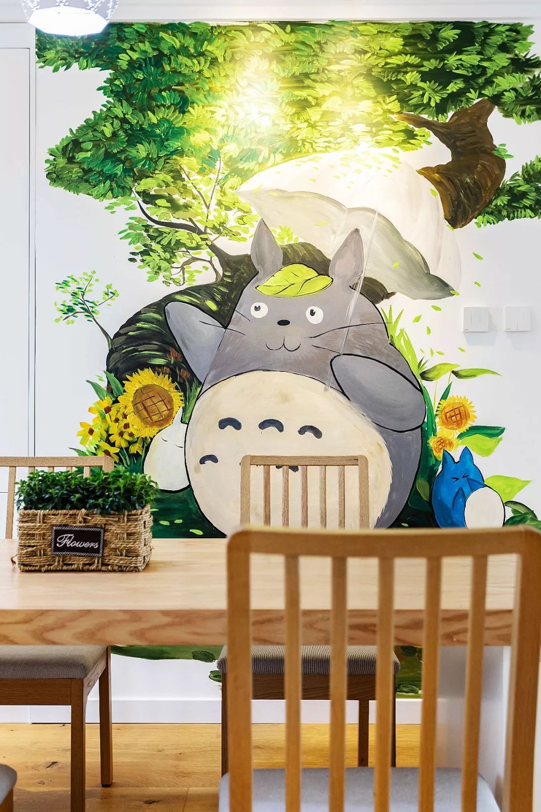 ▲ 餐廳以手繪版龍貓為背景墻,暖暖的燈光營(yíng)造溫馨舒適的氛圍。