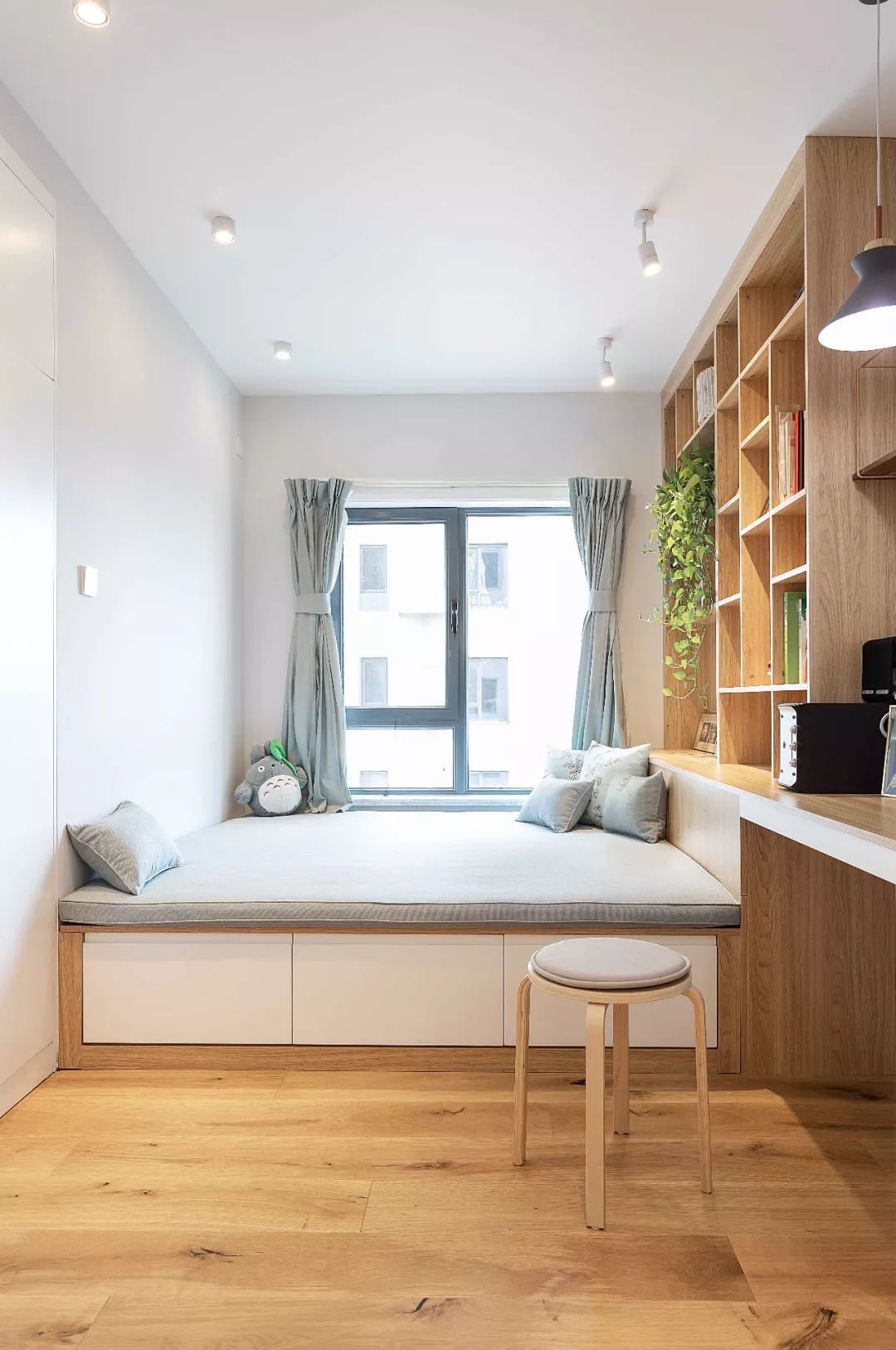 ▲ 書(shū)房主要滿足主人的工作需求,使其可以有一個(gè)獨(dú)立工作和思考的空間。搭配榻榻米設(shè)計(jì),增加了大量的儲(chǔ)物空間,也可以作為臨時(shí)客房使用。