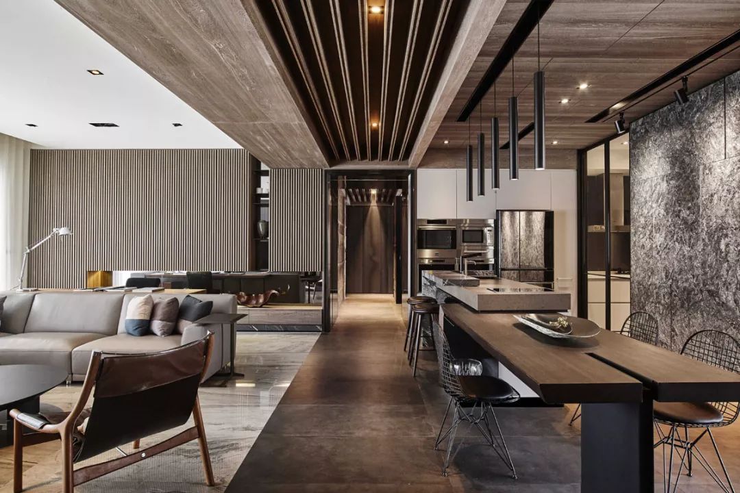 利用各種線性燈具來豐富頂面美化空間視覺,也可以給人帶來極具時(shí)尚氣質(zhì)的美感體驗(yàn)。