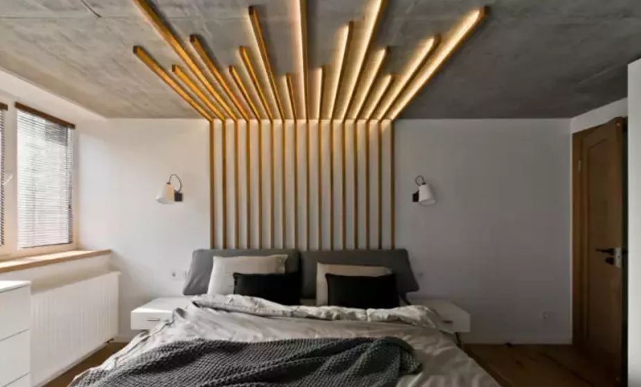 非常有創(chuàng)意的木制吊頂 + 燈帶的設(shè)計(jì)