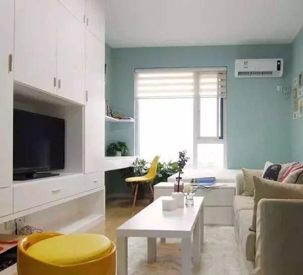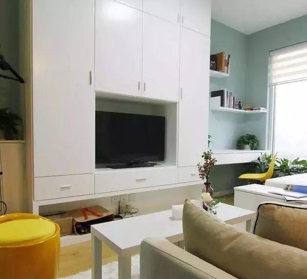 空間面積小,那么就多想想利用一下墻面空間,電視直接掛壁,這樣就省去了電視柜占用空間,墻壁上設(shè)計壁龕、嵌入式收納格檔,就能可以多收納些小物件,增加空間的利用率。