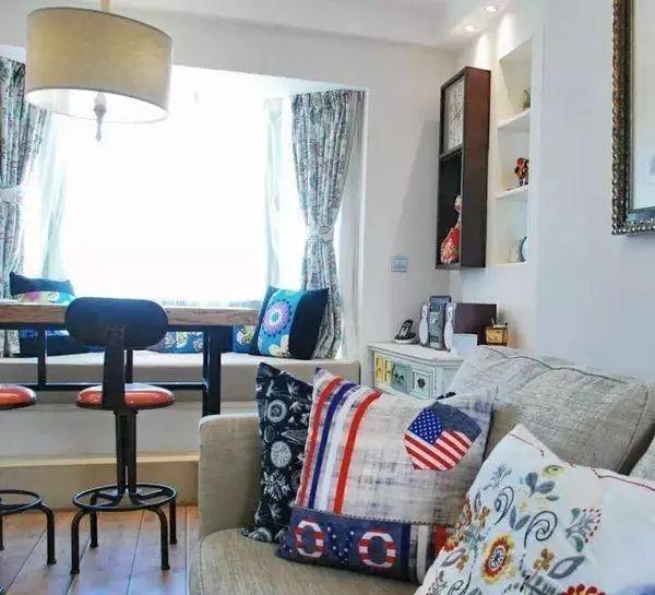 客廳的陽臺雖然不大,但是巧妙的利用起來設(shè)計成榻榻米,你就會發(fā)現(xiàn)收納容量大了很多,榻榻米下可以做收納區(qū),榻榻米上方可以做休閑區(qū)或者小書房,是多功能型的。