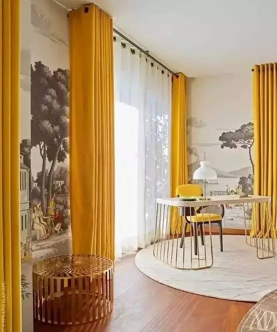 亮黃色的窗簾與椅子相呼應(yīng),還好選的椅子面積很小,不然大面積的飽和色空間估計很難舒服的呆著。