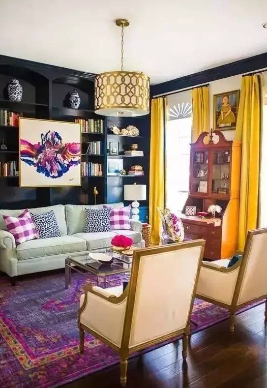 如果你家已經(jīng)比較擁擠、掛了很多畫、地毯、靠墊顏色較多的話,請選純色窗簾。