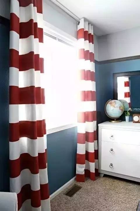 比上下雙色的窗簾再多一點點,就是條紋圖案了。