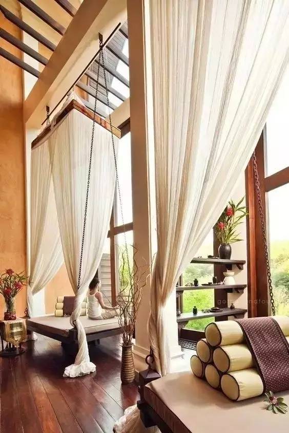 東南亞:色彩豐富但是顏色多數(shù)呈深棕色,所以一般窗簾使用米色