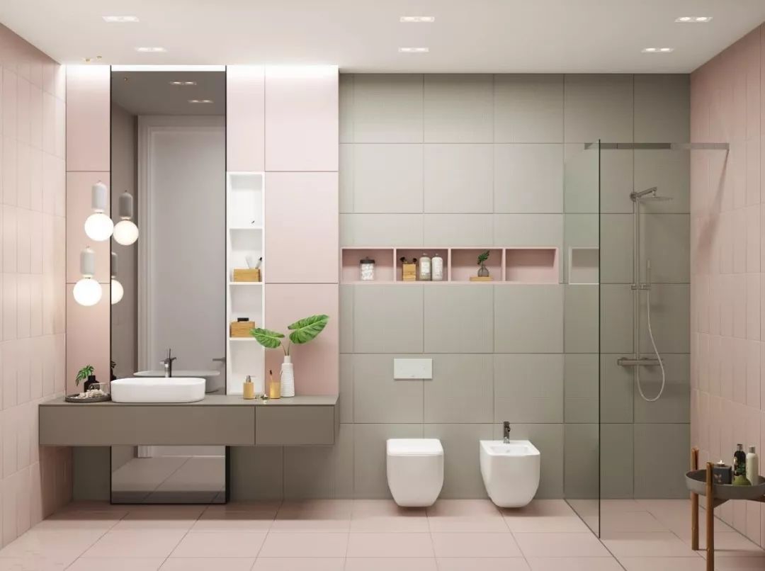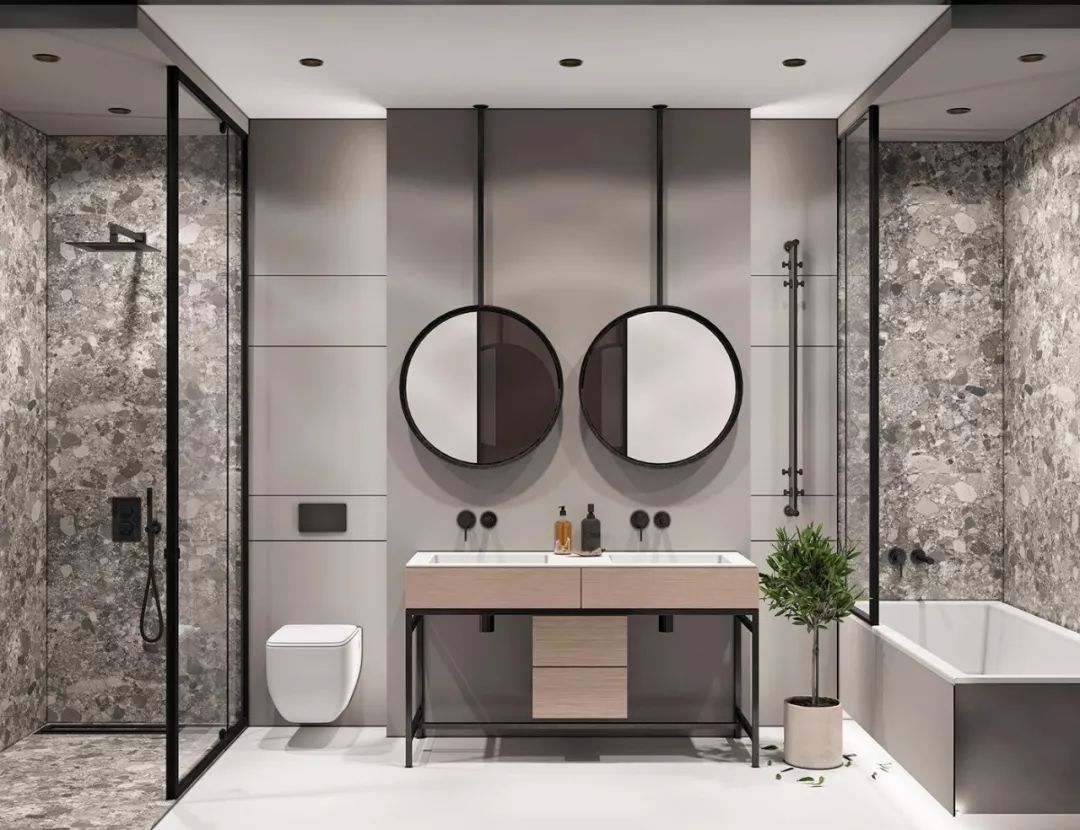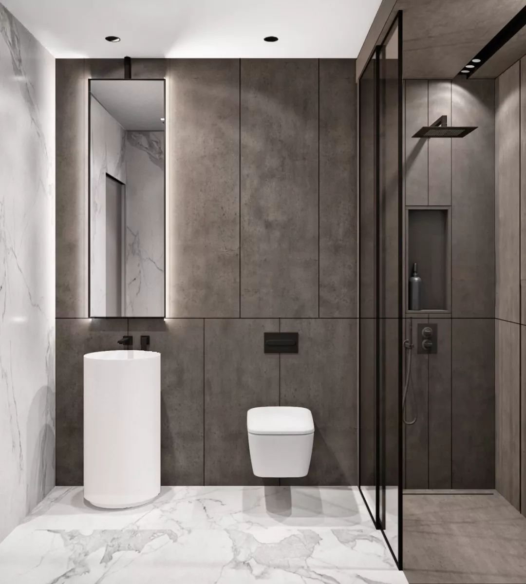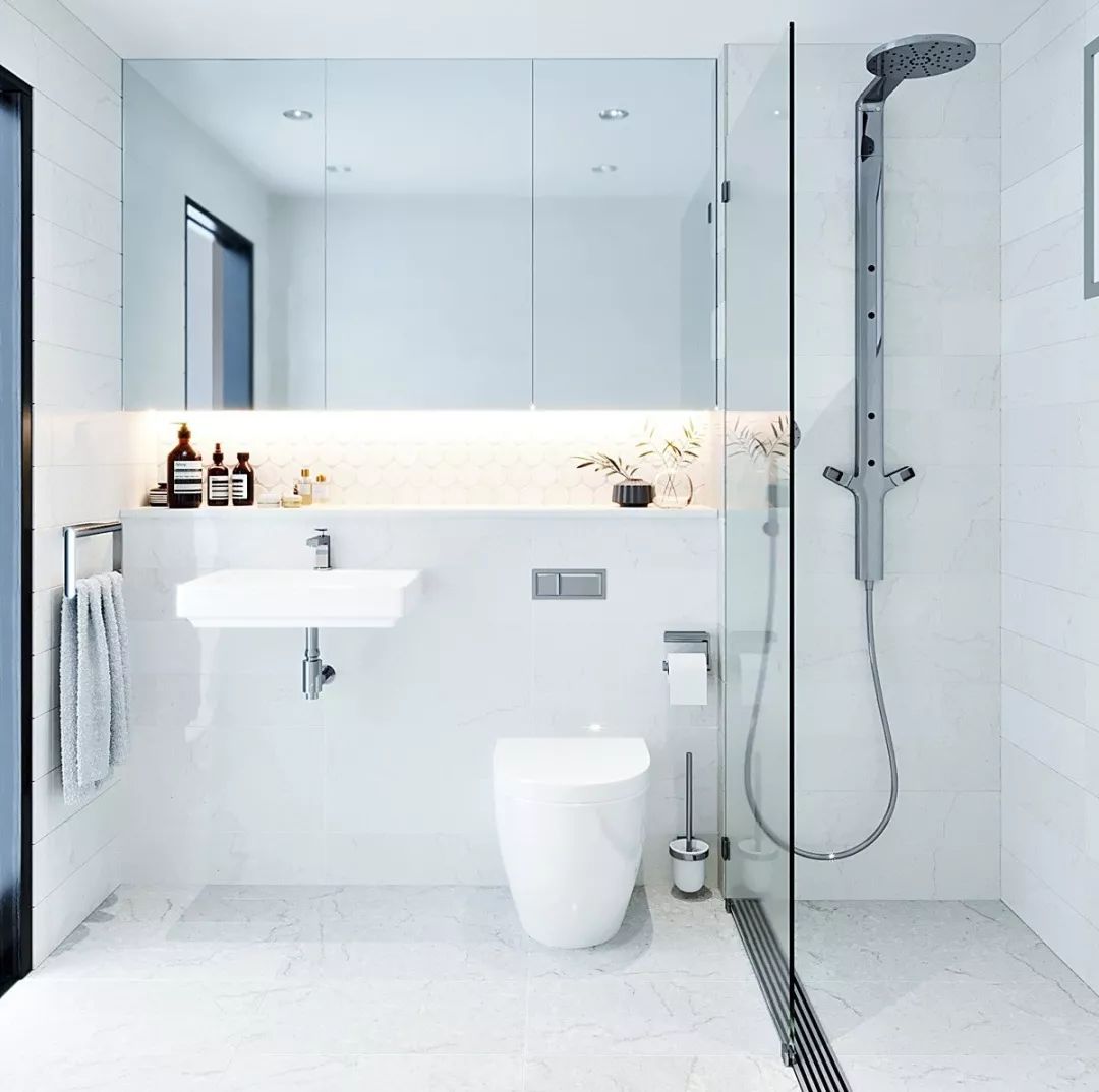 也可以采用淋浴屏+內(nèi)嵌浴缸的形式,這樣泡澡、淋浴兩不誤,而且不用單獨做干濕分區(qū)。