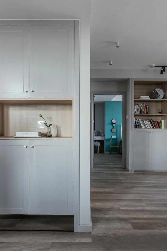 ▲ 空間格局的改造,讓玄關(guān)擁有了一整面墻的鞋柜,可以存放幾百雙鞋。鞋柜中部與底部留空,方便取放零散物品以及日常更換鞋子。