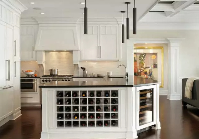 開放式廚房,把操作臺(tái)的底部打造成了開放式酒格,讓整個(gè)操作臺(tái)也變得有趣起來了呢。