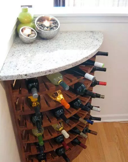 想要節(jié)省空間,這樣的死角用來做酒柜正好。建議可以在臺(tái)面上放些好看的綠植裝飾哦!