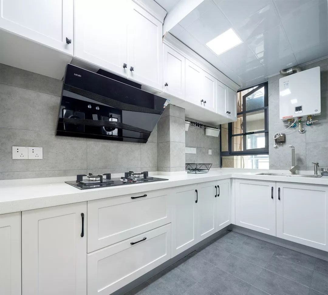 ▲ 廚房以灰白兩色為主調,搭配得當使得整個廚房看起來更加簡潔、敞亮。