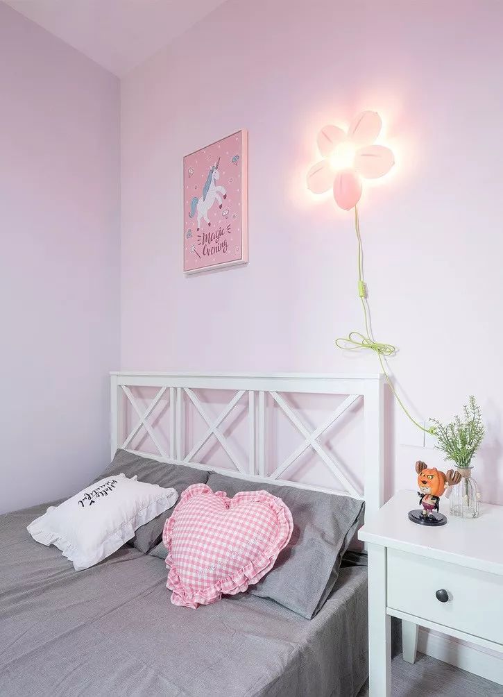 ▲ 兒童房,墻上的裝飾畫展現(xiàn)著童真有趣的一面?;ǘ湓煨偷拇差^燈,散發(fā)出柔和的光線,烘托出靈動的空間氛圍。
