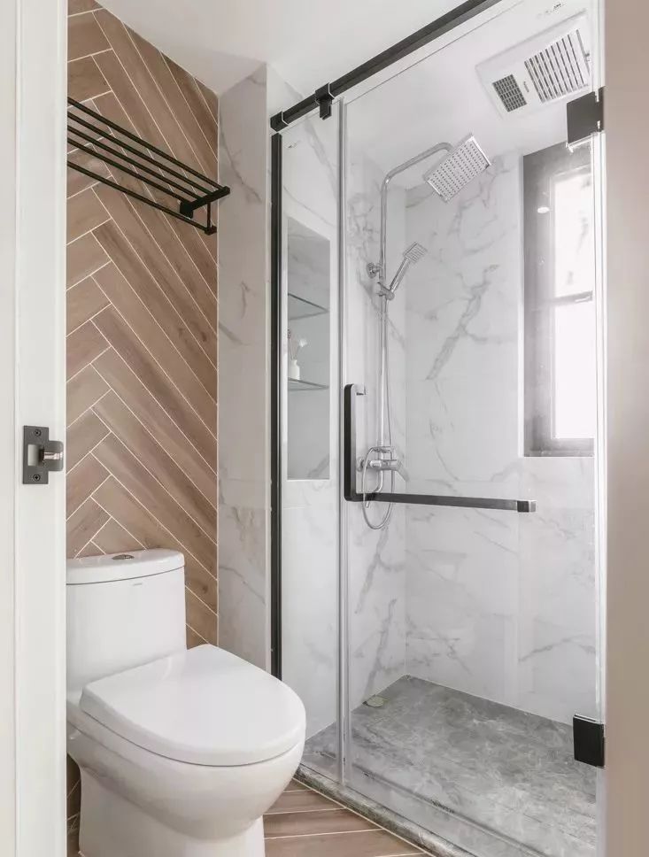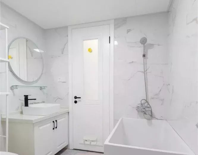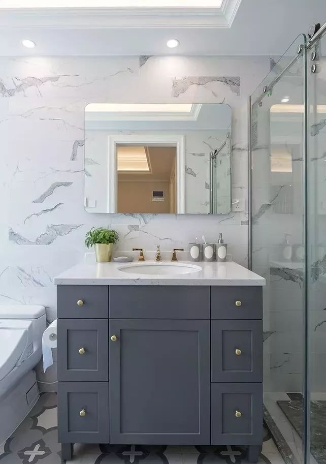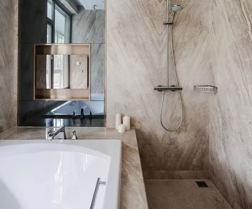 歲月賦予石材獨特的紋路與高貴的氣質。淺色仿大理石紋路瓷磚用于衛(wèi)浴,潔凈優(yōu)雅,提升了整個空間的氣氛。