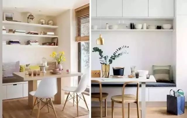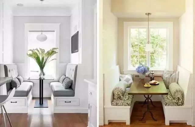 無論大戶型還是小戶型,都可以選用具有強大收納功能的雙面卡座,雙面卡座最好的位置是在窗邊,一個明亮而又浪漫的空間就這樣打造而成,你可以在此用餐,也可以在此閱讀聽歌,賞景。