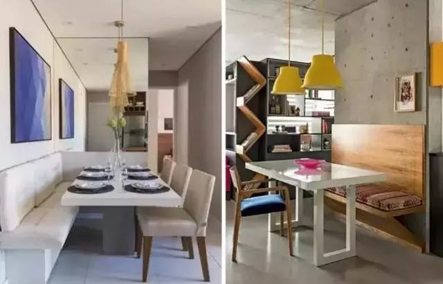 這種卡座依墻而設,是裝修中最為常見的,直線型結(jié)構(gòu)既簡單又節(jié)省空間。