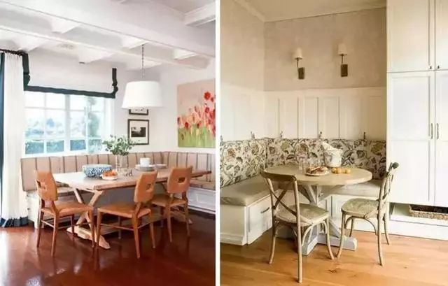 L形的卡座通常設置在拐角位置,在充分利用空間的同時,也增加了收納空間,卡座既讓空間布局更趨于合理,同時卡座區(qū)還為我們的家增添了用餐、休閑等功能。