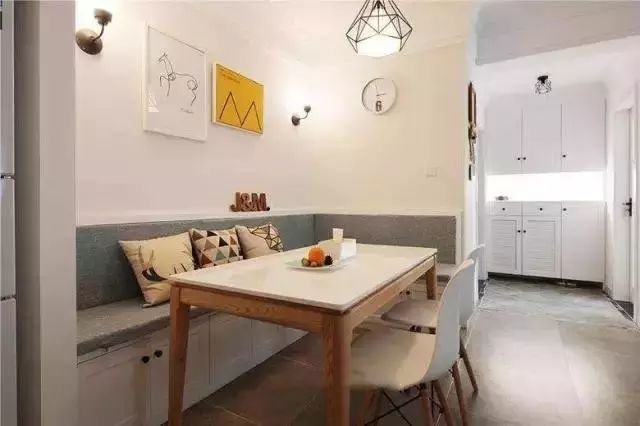 視覺上干凈整潔,增加收納空間,尤其是家里東西比較多的小伙伴,卡座底部的收納柜或者組合其他收納柜設計正好解決了收納問題。