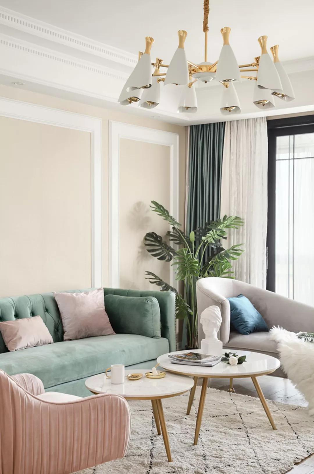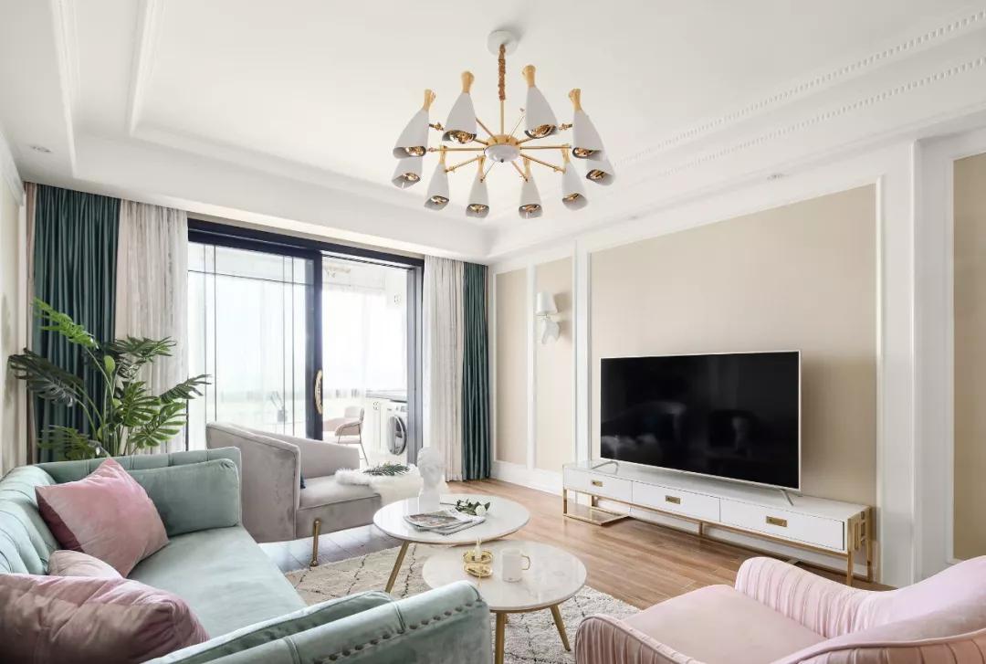 這是一套面積為129平的簡美風格,裝修非常不錯,尤其是在配色方便就拿客廳來說,采用綠色、粉色、金屬色及暖色調(diào)裝飾,非常的漂亮,這樣的一套簡美風格真是顯得格外好看,真的很時尚,下面我們一起來欣賞一下這套案例吧。