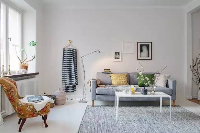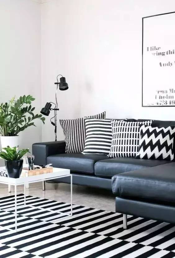 灰色地毯最百搭,使客廳更簡(jiǎn)約、雅致,豎長(zhǎng)的條紋也使客廳更加寬敞。