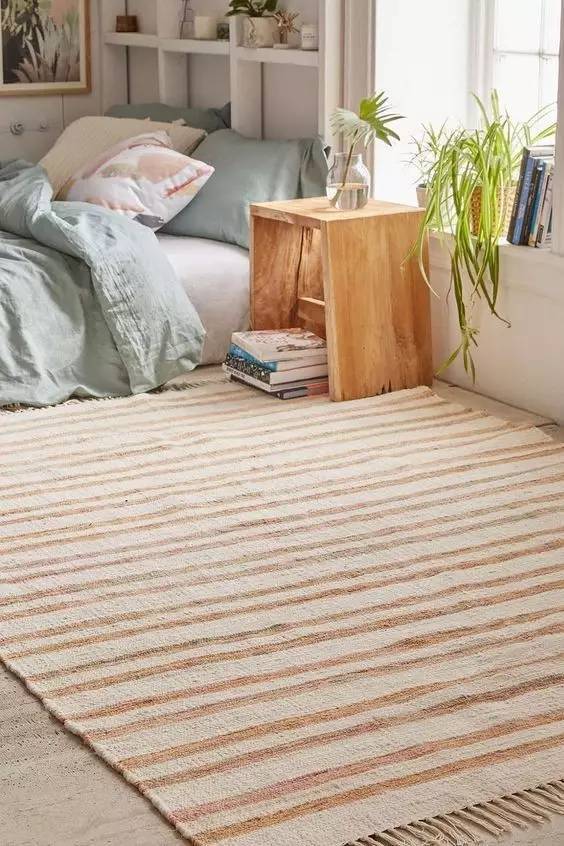 ◆自然田園風(fēng)的臥室放這樣的地毯,每次踩上都想象著走在鵝卵石小路上。