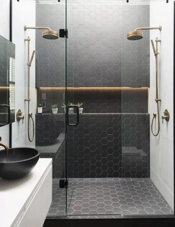 壁龕在衛(wèi)浴間運用尤其多,洗浴用品有了容身之處,又省去了收納用具。設(shè)計時造型上還可以與墻面融合在一起,作為收納架or收納板,鐵的怕生銹,木的怕掉色,只有壁龕才能拯救潮濕的衛(wèi)生間。