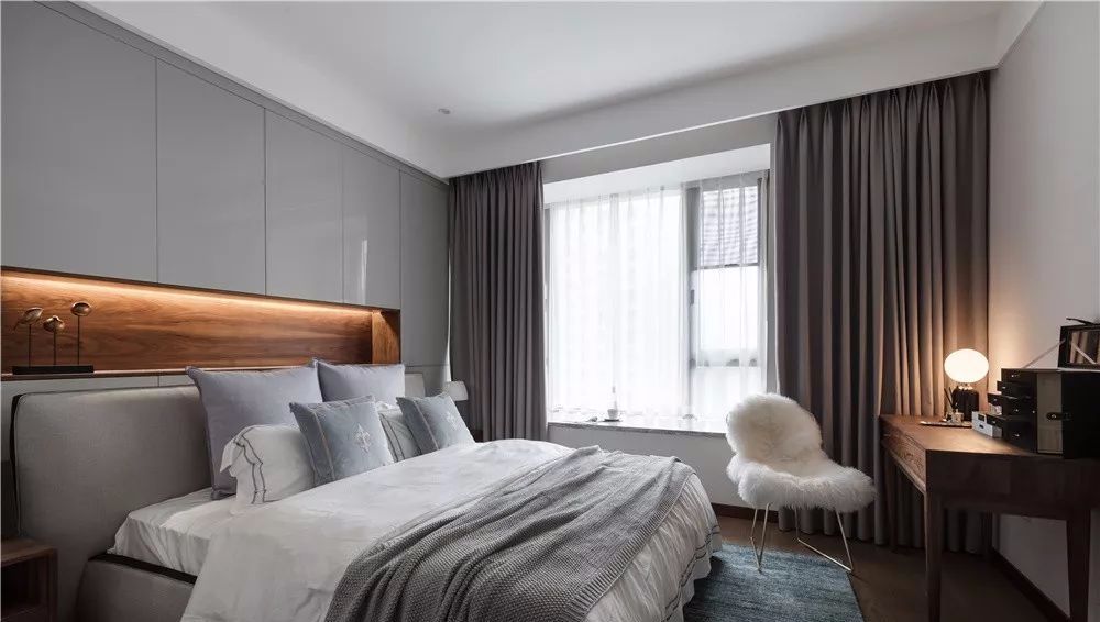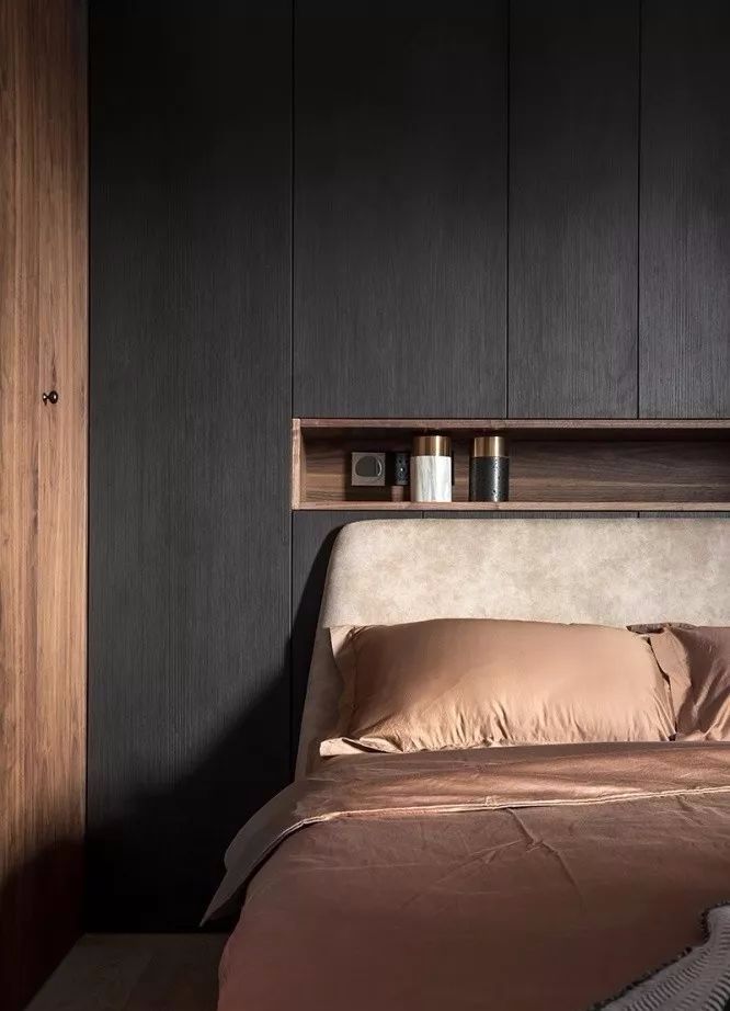 臥室的壁龕,可以完美兼容床頭柜的功能,非常適合沒有床頭柜空間的小戶型臥室。但也要注意留白,特別是床頭不能填充太滿,不然壓抑!