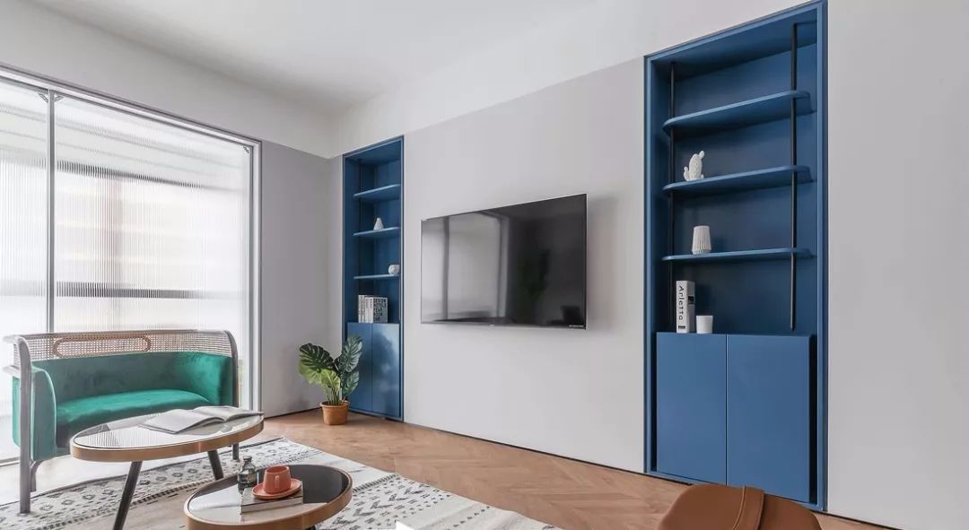 ▲沙發(fā)背景墻、電視背景墻都可以利用墻壁的厚度打造書架,是常見的做法,遠(yuǎn)看是和墻壁融為一體的裝飾。