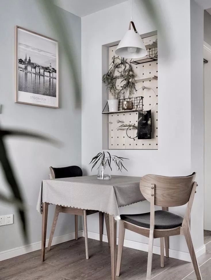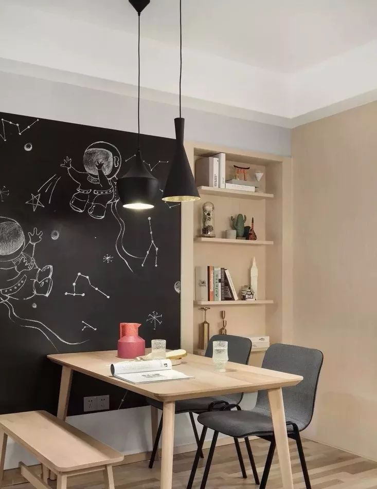 在餐廳附近也可以做一個壁龕,充當(dāng)餐邊柜,不管是餐具還是擺件都可以放進(jìn)去,節(jié)省空間還有裝飾作用,調(diào)調(diào)一下就上來了。