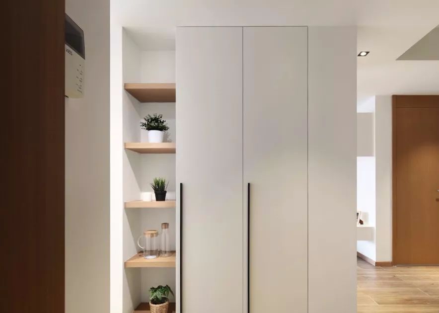▲因為是內(nèi)嵌進(jìn)去的,所以不占用外邊空間,特別適合小戶型。上面用擱板,下面用封閉式的柜子,囤一些東西剛剛好。
