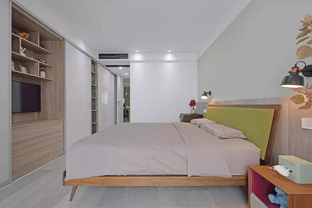 臥室布置挺簡單的,一張床搭配兩個(gè)床頭柜,簡單的布置其實(shí)也挺好的,便于平時(shí)好整理,床尾安裝了一排電視柜加衣柜的組合柜,收納空間多存儲力強(qiáng)。