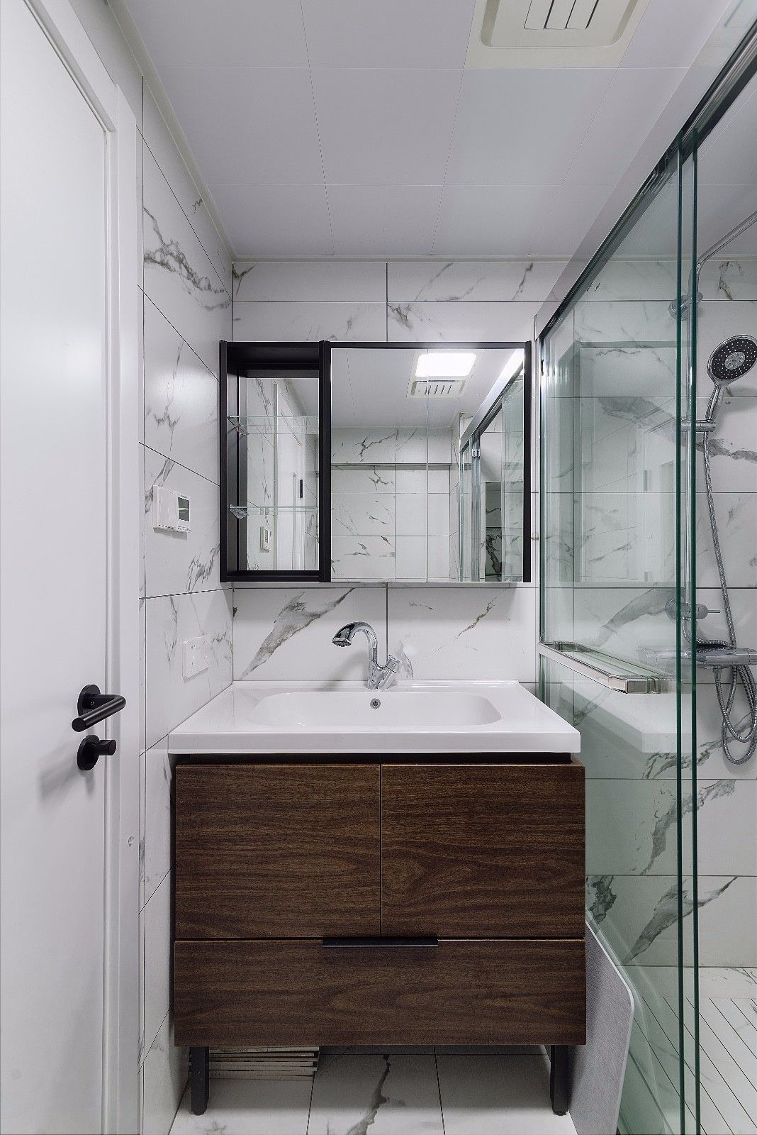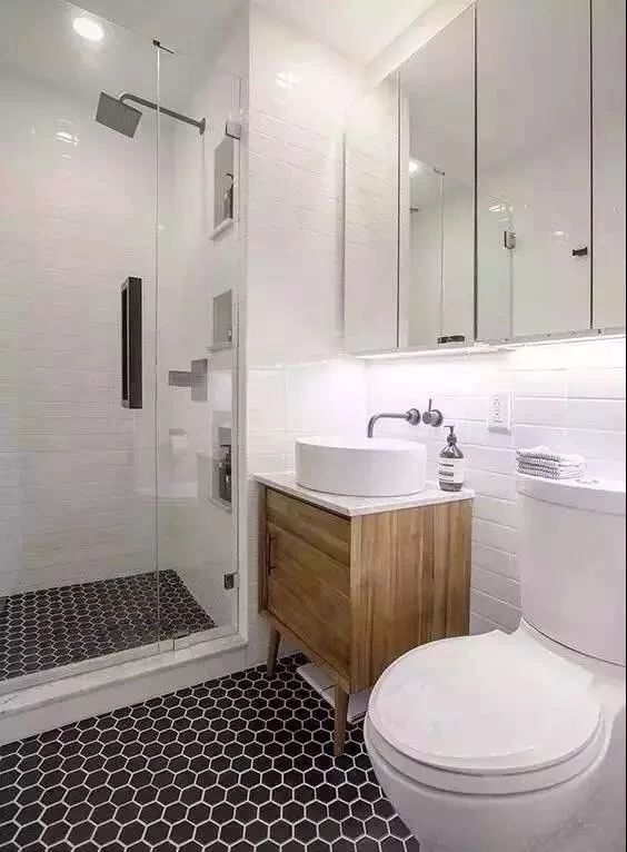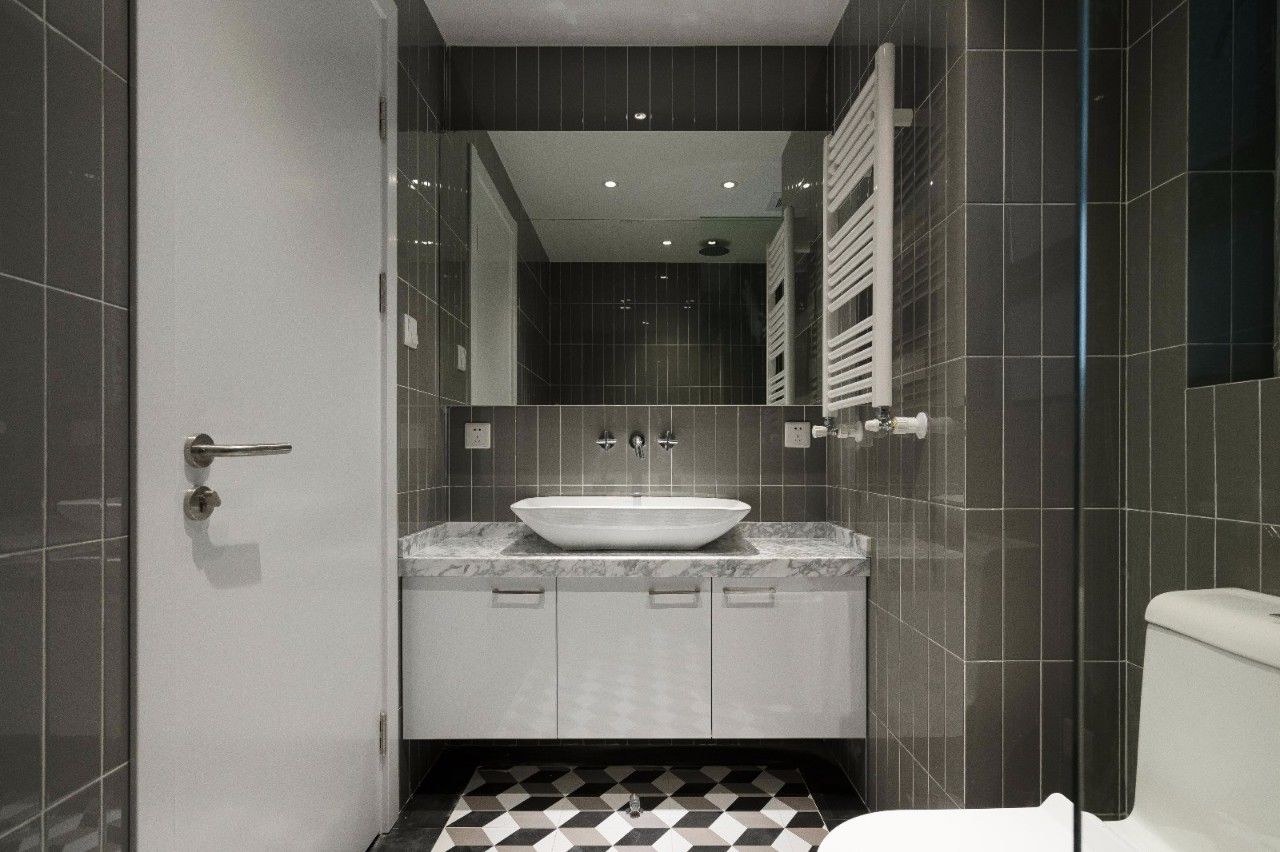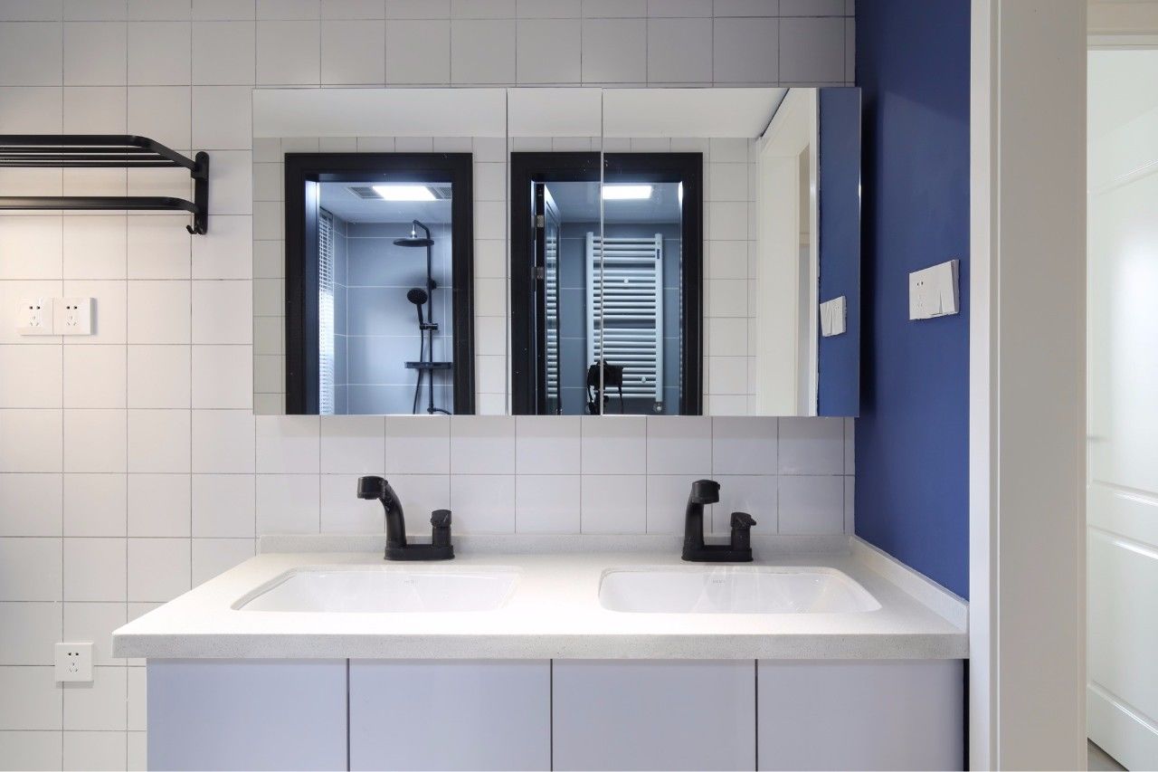 當(dāng)墻面貼的是有顏色的墻磚時,以潔白的洗手臺盆組合來搭配,那么整體衛(wèi)生間氛圍就會被大面積的白色緩解,呈現(xiàn)出一個現(xiàn)代優(yōu)雅的舒適衛(wèi)浴空間。