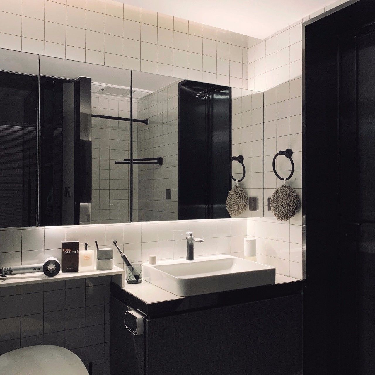黑白配作為流行的搭配色,在整潔簡潔的衛(wèi)生間里搭配上黑色的洗手臺盆組合,可以搭配出經(jīng)典而又潮流的空間感,同時也會顯得穩(wěn)重優(yōu)雅而高檔。