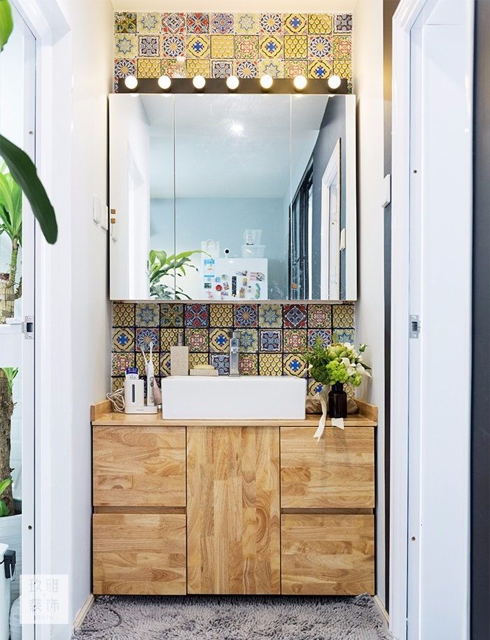 除了以上這些常見的洗手臺盆組合風(fēng)格,還有一些顏色相對大膽的搭配,運用得當(dāng)?shù)脑?,整體效果也會是相當(dāng)?shù)牟诲e,各位也可以借鑒一下哦!