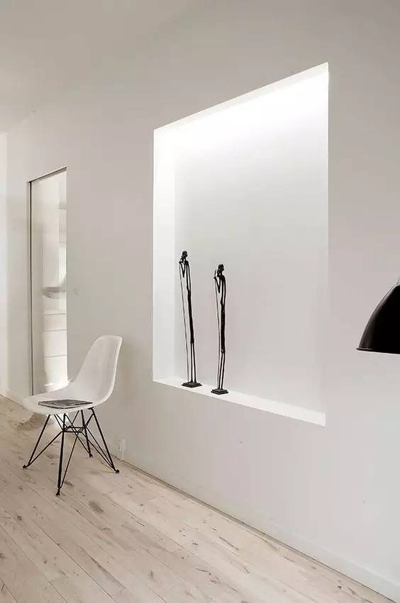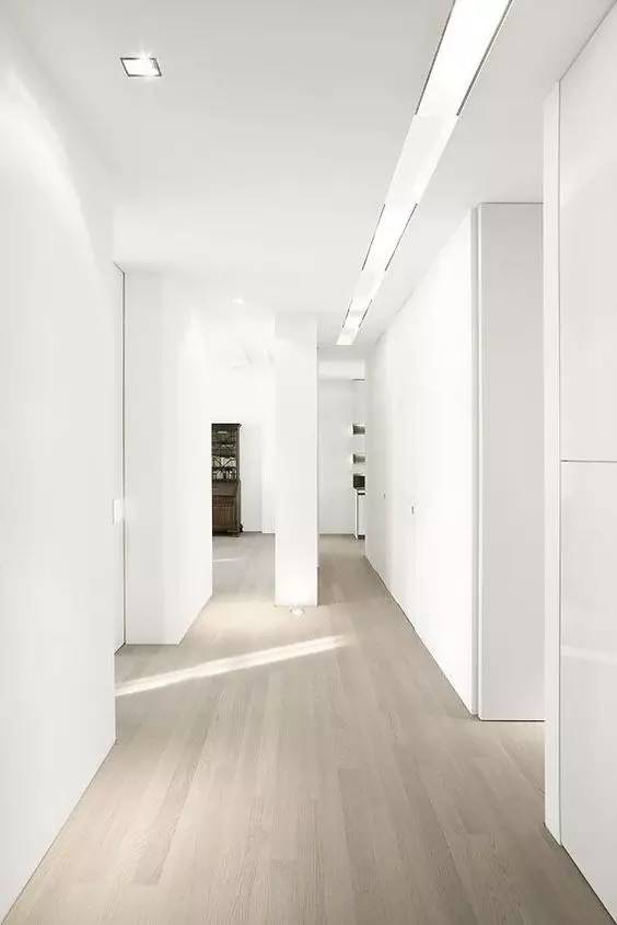 很多國外現(xiàn)代簡約風(fēng)的家居美圖里,空間上下線條利落,墻角沒有多余的踢腳線,顯得渾然一體。
